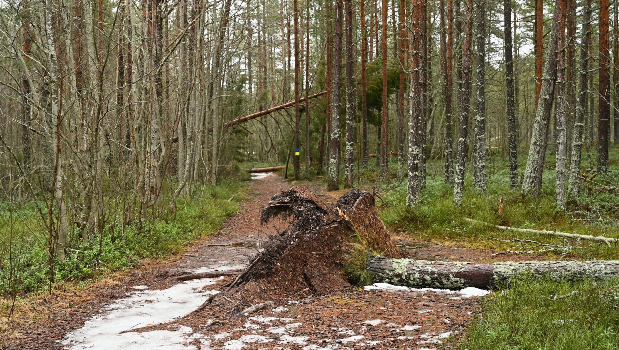 Stormen Hannes fällde flera träd, och även om stammarna redan har avlägsnats har många träd fallit med rötterna upp. Under köldperioden har dessa rotvältor frusit i upprätt läge, men när vädret blir mildare kan de falla tillbaka ner mot marken utan förvarning.